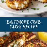 Classic Baltimore Crab Cakes feature fresh lump crab meat blended with flavorful seasonings and herbs, lightly bound with mayonnaise and egg, then pan-fried to golden perfection. These crispy, tender crab cakes make an irresistible appetizer or main dish, perfectly complemented with a squeeze of fresh lemon and parsley garnish.