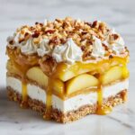 Place a final layer of graham crackers on top, then generously pour caramel sauce over the whole surface. Spread it evenly so every slice gets that luscious, buttery caramel that makes this dessert truly unforgettable.