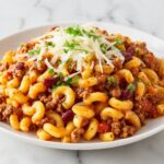 This Chili Mac and Cheese is a hearty and flavorful one-pan meal combining tender elbow macaroni with a spicy ground beef chili mixture, kidney beans, and melted cheddar cheese. Perfect for a comforting weeknight dinner, this dish balances the warmth of chili spices with creamy cheese, topped with fresh cilantro for a pop of color and freshness.