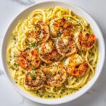 To reheat, gently warm the shrimp and sauce in a skillet over low heat, stirring occasionally so the butter stays emulsified and the shrimp don’t become rubbery. If needed, add a splash of white wine or broth to refresh the sauce’s texture. Avoid microwaving to prevent uneven heating.