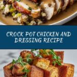This comforting Crock Pot Chicken and Dressing recipe combines tender, slow-cooked chicken breasts with a flavorful, moist stuffing made from cornbread and herb-seasoned mixes. Enhanced with sautéed onions and celery, creamy soups, and aromatic spices, this dish is an effortless, hearty meal perfect for family dinners.