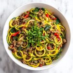 This Keto Zucchini Noodles with Ground Beef recipe is a low-carb, flavorful dish perfect for those following a ketogenic or low-carb lifestyle. It features spiralized zucchini noodles tossed in a savory ground beef tomato sauce, seasoned with Italian herbs and finished with Parmesan and fresh herbs. Quick to prepare and cook, it’s a healthy and satisfying alternative to traditional pasta dishes.