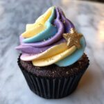 Divide the frosting into four bowls and add gel food coloring to create shades of blue, purple, black, and white—the colors of the galaxy come alive here! Mix each until smooth. Using a piping bag or a simple ziplock bag with the tip cut, pipe layers or dollops of each color onto the cupcakes. Gently swirl the colors together for a marbled galaxy effect, then add edible glitter or star sprinkles for extra celestial sparkle. This is where your cupcakes truly become works of art.