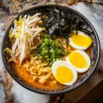 A comforting and flavorful miso ramen recipe featuring a savory broth enriched with white miso, tender ramen noodles, and topped with soft-boiled eggs, fresh bean sprouts, green onions, and nori strips. Ready in just 35 minutes, this dish is perfect for a quick and satisfying meal.