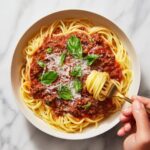 This Turkey Bolognese recipe is a hearty and nutritious twist on the classic Italian meat sauce, using lean ground turkey for a lighter yet flavorful dinner option. The sauce is rich with diced vegetables, tomatoes, Italian seasoning, and a touch of creaminess from half and half. Served over perfectly cooked spaghetti and garnished with fresh basil and parmesan cheese, it’s a comforting, family-friendly meal ready in just 30 minutes.