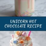 The joy of the Unicorn Hot Chocolate Recipe lies in its playful garnishes. A generous cloud of whipped topping provides a light contrast to the creamy drink beneath. Sprinkles and mini marshmallows add texture and sweetness, while the drizzle of pink candy melts is a perfect finishing touch that transforms your mug into a true centerpiece.