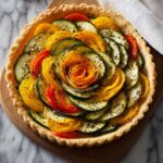 Serve this Vegetable Tart in Buttery Puff Pastry Recipe as a family-style centerpiece on a rustic wooden board with a knife for guests to slice their own portions. Alternatively, cut it into small squares to offer as elegant appetizers at a party; they look delightful arranged on a platter garnished with fresh thyme sprigs. No matter how you present it, this tart will steal the show.